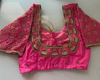 Pink Pattu Silk Blouse With Bell Motifskundan Work Etsy Canada